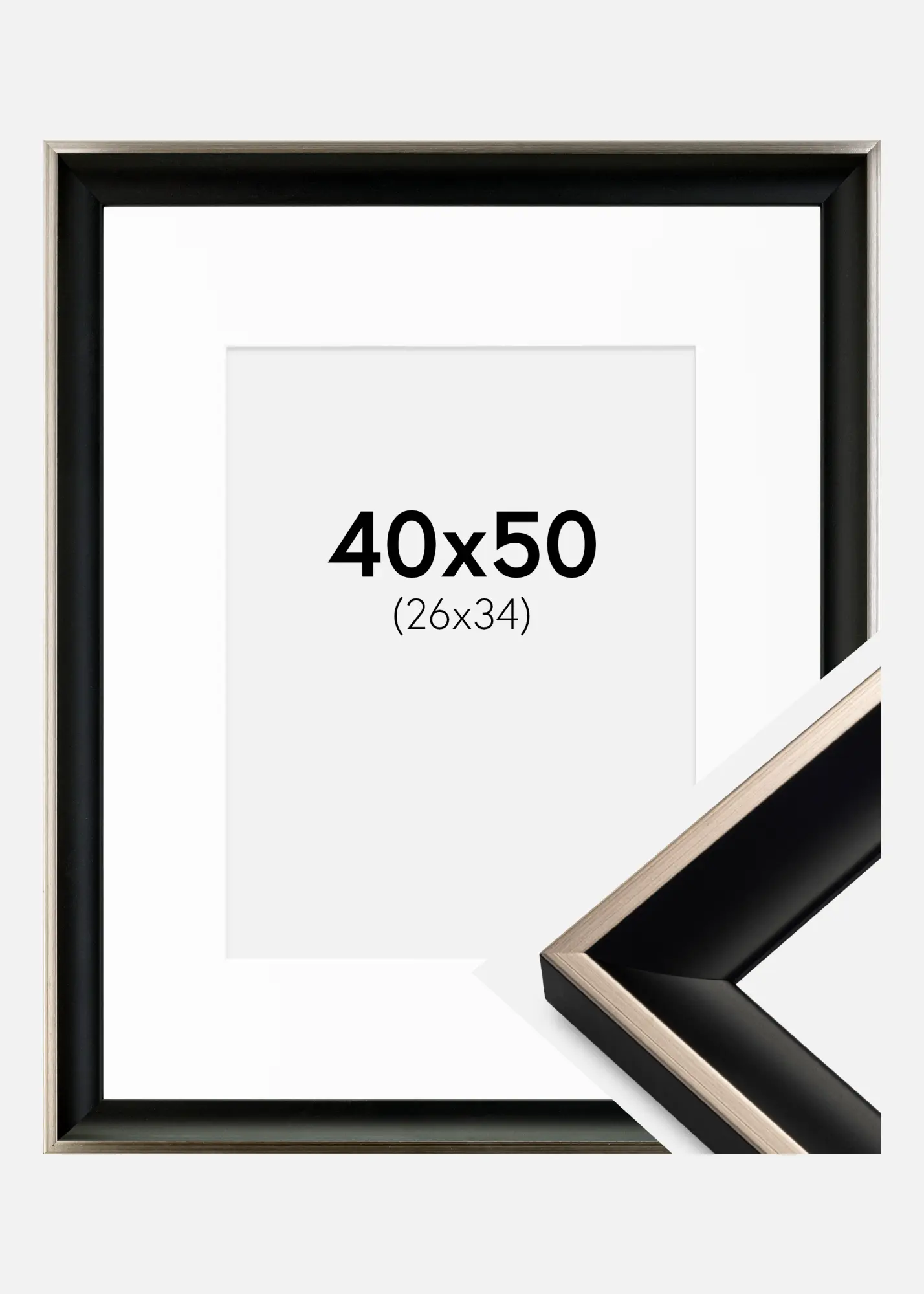 Cadre Öjaren Noir-Argent 40x50 cm - Passe-partout Blanc 27x35 cm