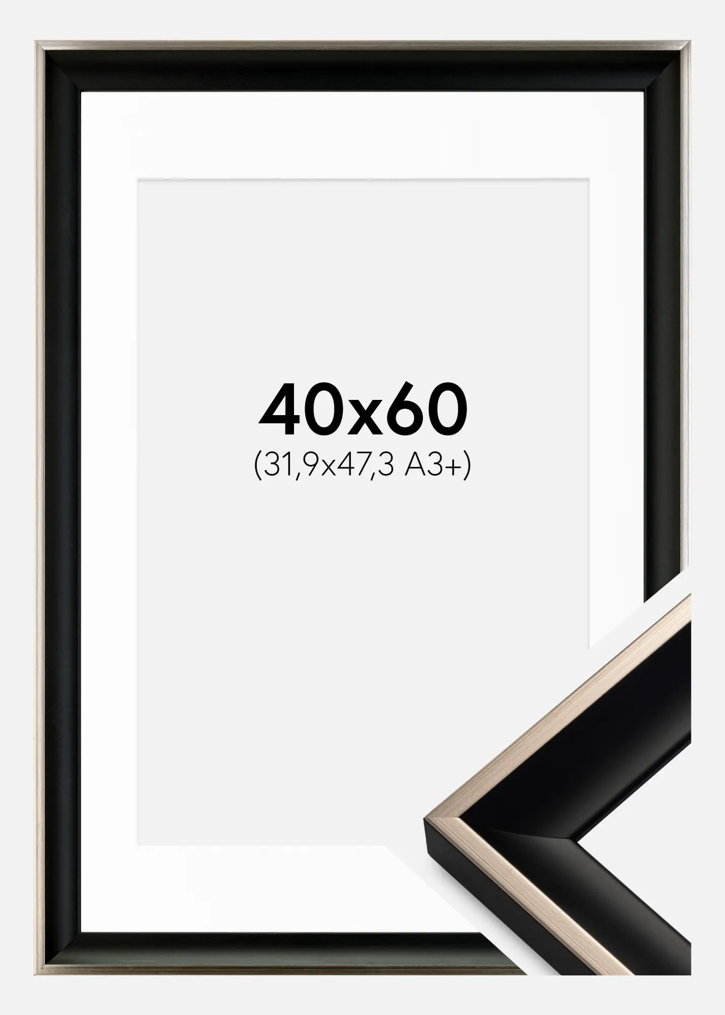 Cadre Öjaren Noir-Argent 40x60 cm - Passe-partout Blanc 32,9x48,3 cm (A3+)