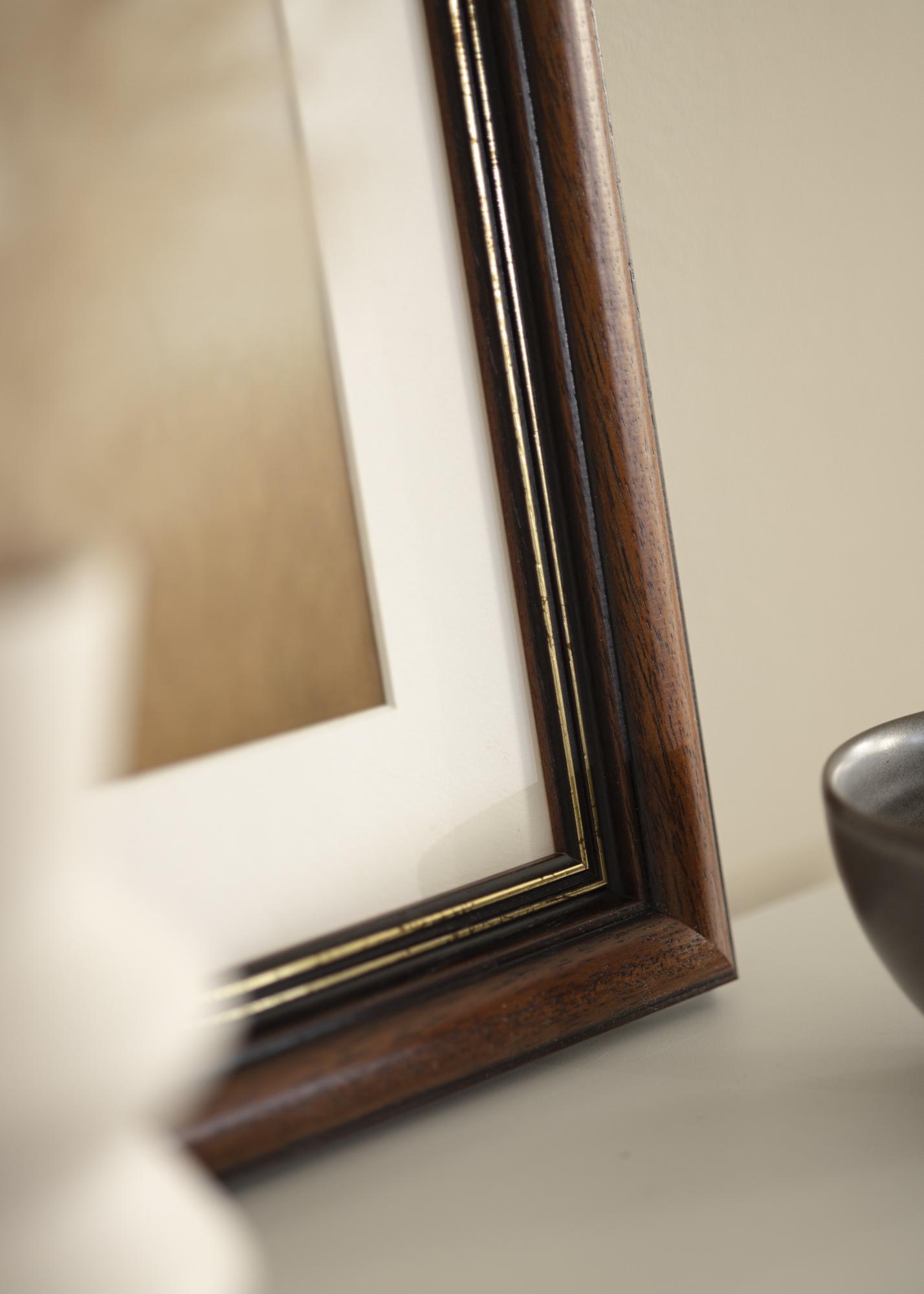 Cadre en bois marron avec d'élégantes lignes dorées autour du motif