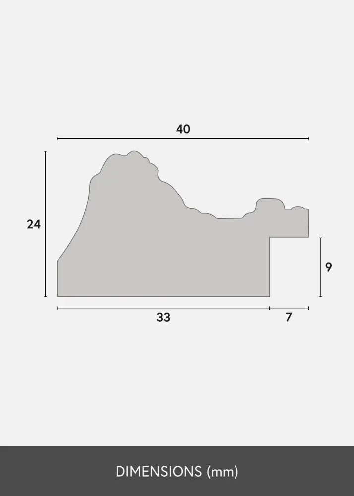 Le profil magnifiquement détaillé avec des ornements classiques donne une sensation intemporelle qui ne se démode jamais. Le cadre est fabriqué en matériau composite, offrant une construction durable et légère. Avec une bordure de cadre de 39 mm de large et une profondeur de 25 mm, ce cadre photo offre un encadrement robuste et stable pour vos images les plus précieuses.