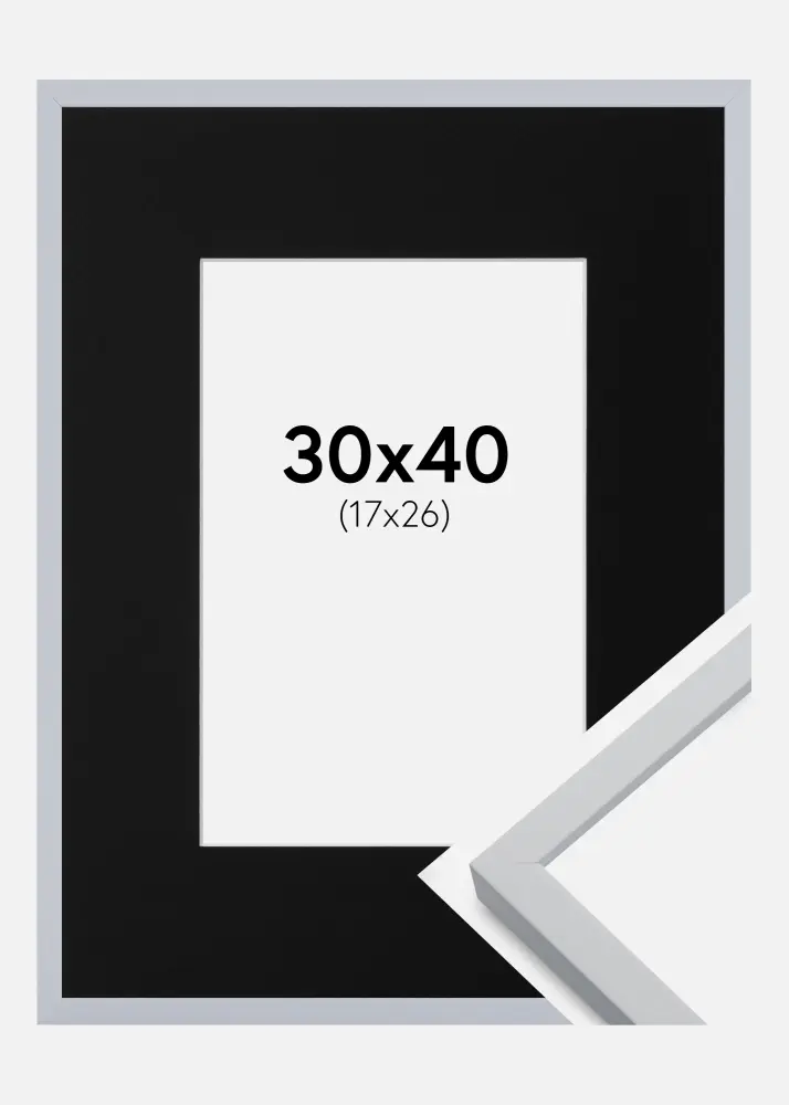 Cadre Oslo Blanc 30x40 cm - Passe-partout Noir 18x27 cm