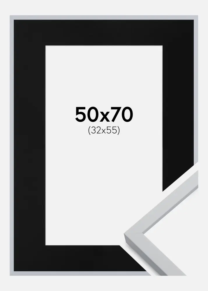 Cadre Oslo Blanc 50x70 cm - Passe-partout Noir 33x56 cm