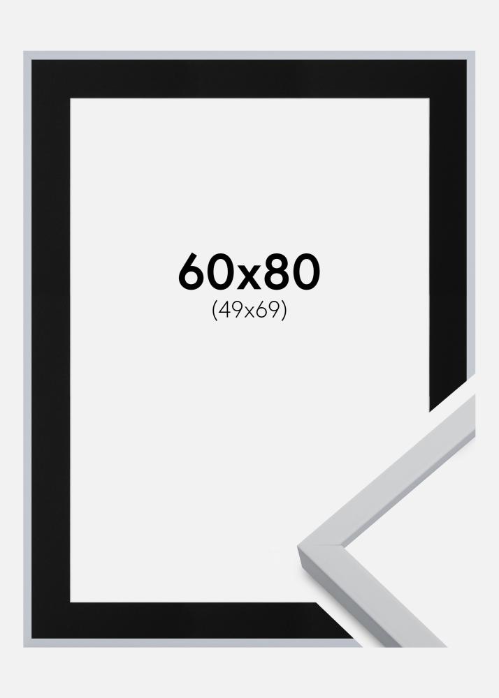 Cadre Oslo Blanc 60x80 cm - Passe-partout Noir 50x70 cm