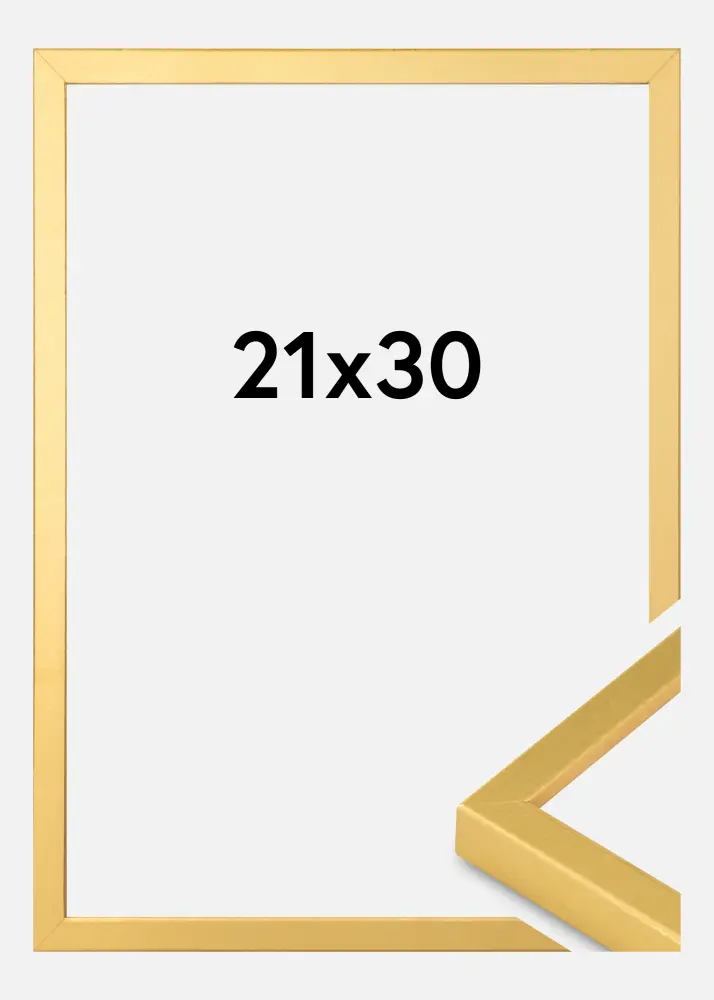 Le cadre doré est conçu pour s'adapter à des formats de 21x30 cm. Avec une baguette de cadre de 12 mm de large et une profondeur de 16 mm, il offre une sensation stable et robuste sans compromettre l'élégance. Le cadre est équipé de supports métalliques à l'arrière, ce qui permet de le suspendre facilement à la fois horizontalement et verticalement selon ce qui convient le mieux à votre motif.