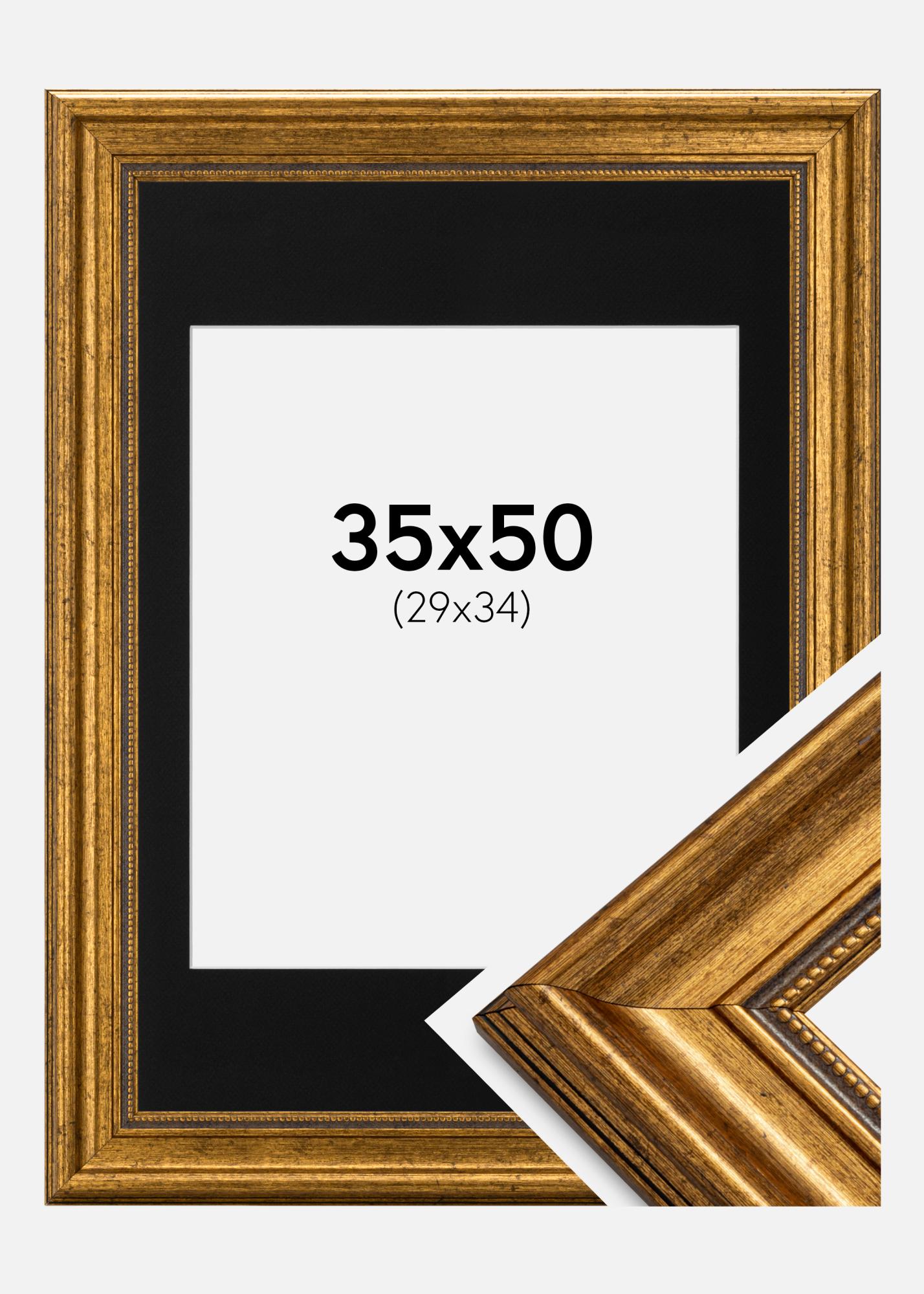 Cadre Rococo Or 35x50 cm - Passe-partout Noir 30x35 cm