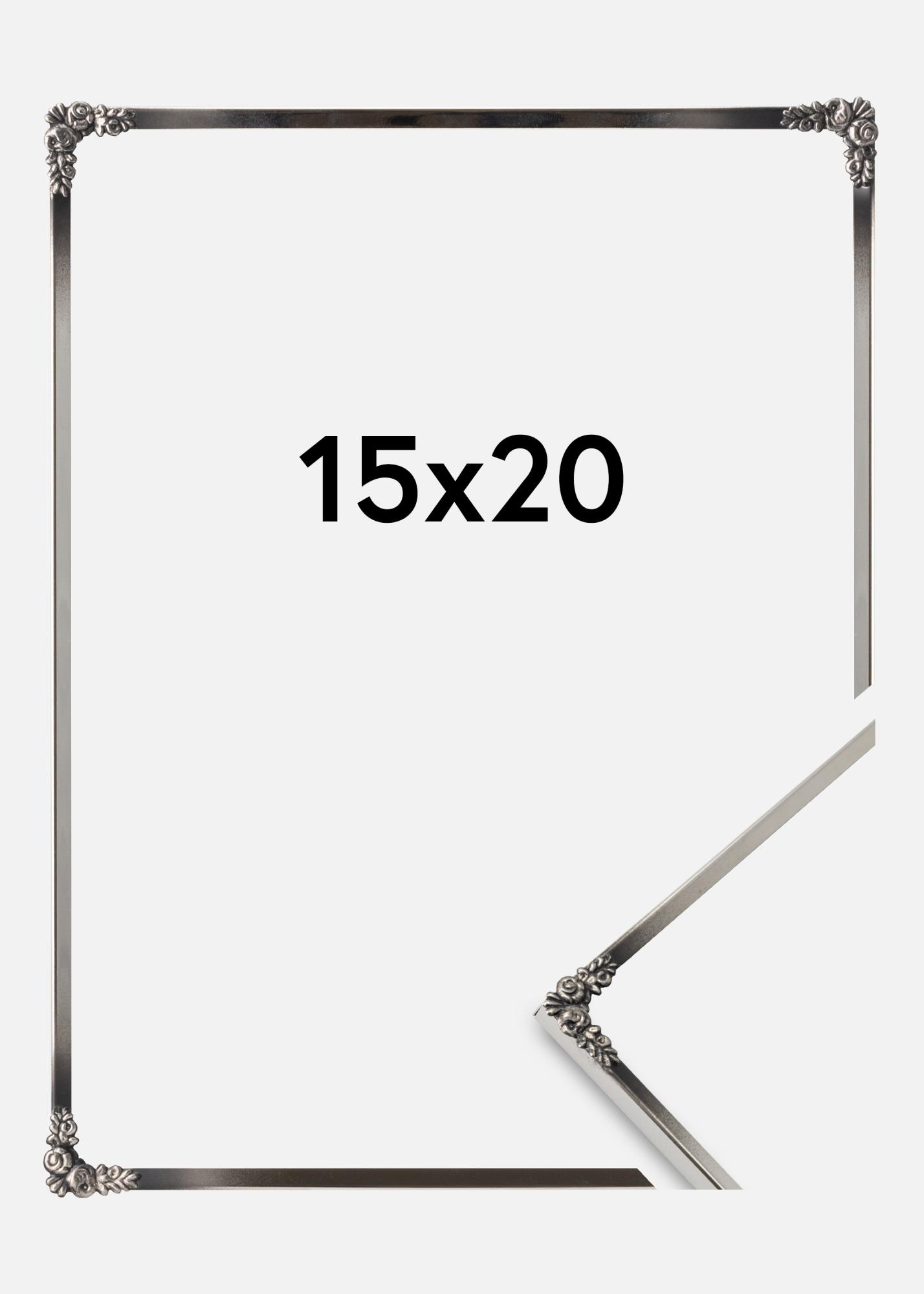 Rosen Metall Silber ist ein Rahmen im klassischen Stil, bei dem jede Ecke mit kleinen eleganten Rosen dekoriert ist. Der Rahmen ist aus silberfarbenem Metall gefertigt und hat ein leicht „verbranntes“ Finish, das dazu beiträgt, ein besonders stilvolles Gefühl zu erzeugen. Auf der Rückseite befinden sich Wandbefestigungen und ein Rückenstütze, was bedeutet, dass der Rahmen sowohl an der Wand angebracht als auch als Dekoration auf einem Möbelstück platziert werden kann.