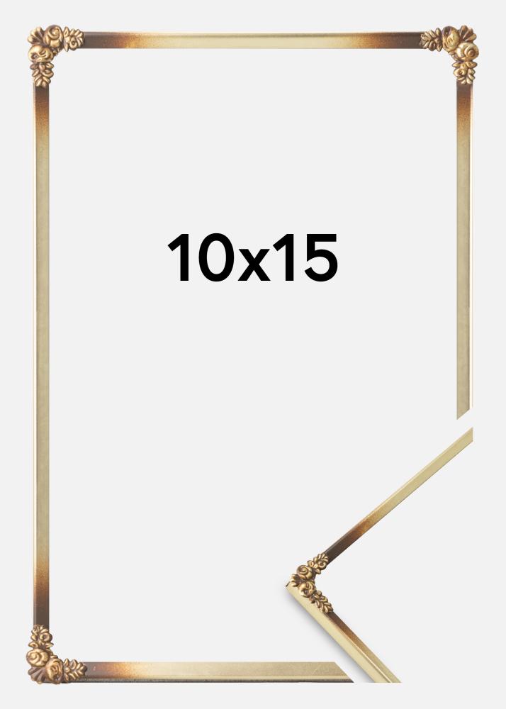Rosen Metall Gold ist ein klassischer Rahmen, der all Ihren Motiven einen raffinierten Rahmen verleiht. Jede Ecke ist mit kleinen Rosen dekoriert, die leicht "verbrannt" sind, um das richtige Finish zu erzielen. Der Rahmen ist aus goldfarbenem Metall gefertigt, was ihn robust macht und gleichzeitig das exklusive Gefühl, das der Rahmen vermittelt, verstärkt.