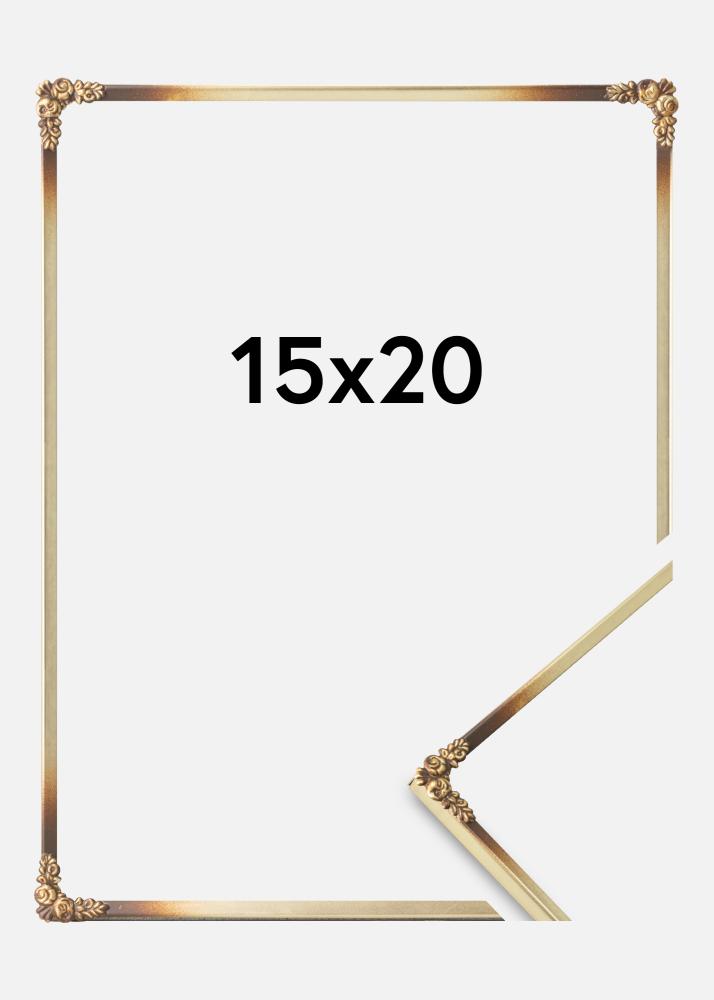 Rosen Metall Gold ist ein klassischer Rahmen, der all Ihren Motiven einen raffinierten Rahmen verleiht. Jede Ecke ist mit kleinen Rosen verziert, die ein wenig "verbrannt" sind, um das richtige Finish zu erzielen. Der Rahmen ist aus goldfarbenem Metall gefertigt, was ihn robust macht und gleichzeitig das exklusive Gefühl, das der Rahmen vermittelt, verstärkt.
