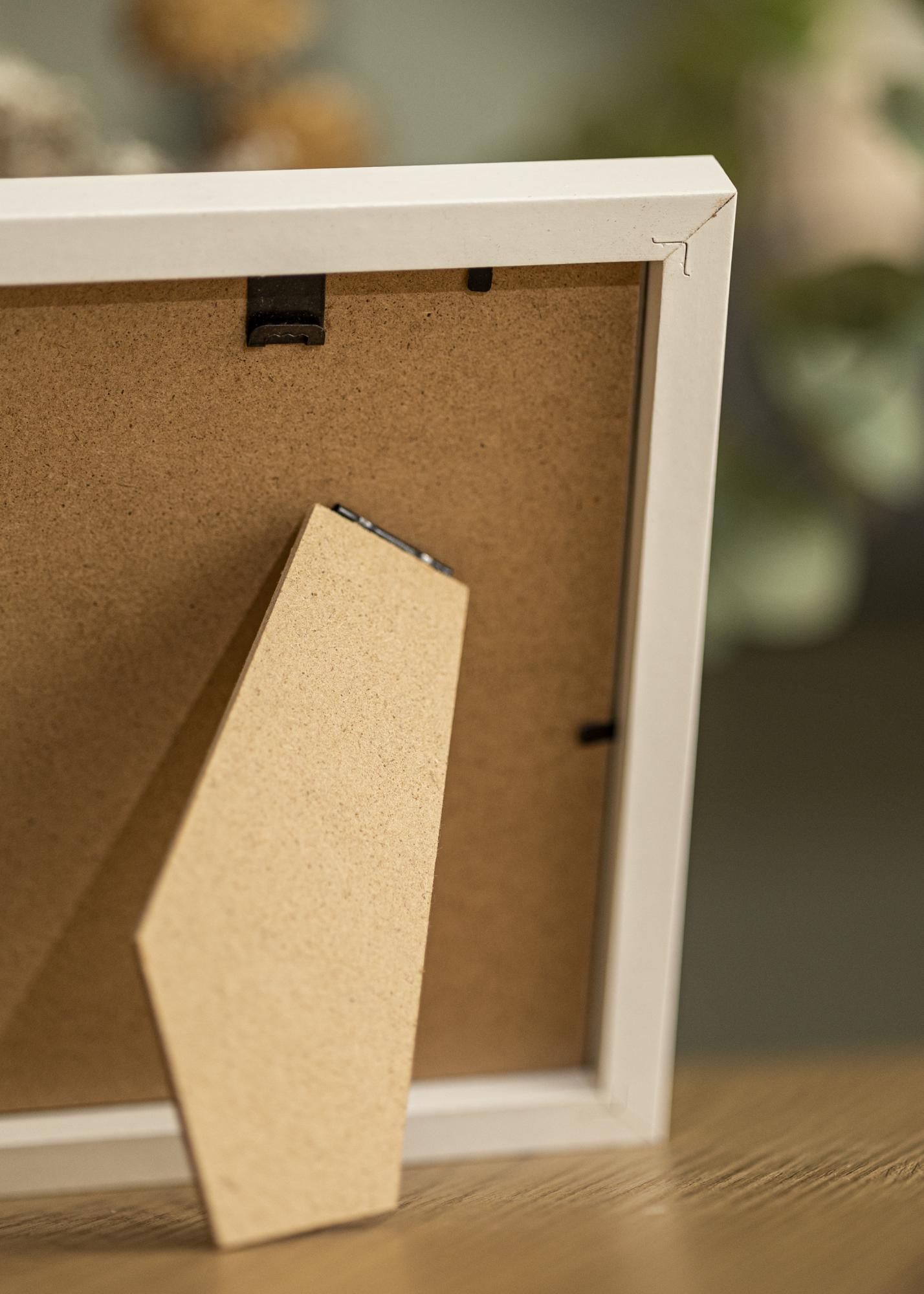 La largeur et la profondeur de la baguette de cadre est de 18 mm. La couleur blanche se marie bien avec la plupart des motifs et est également facile à assortir avec le reste de votre décoration d'intérieur. Le carton de fond du cadre est maintenu en place par de petites broches, que vous pouvez facilement plier et déplier afin de retirer le carton de fond et insérer vos motifs. Au dos du cadre se trouvent des supports muraux pratiques qui permettent d'accrocher le cadre à la fois verticalement et horizontalement.