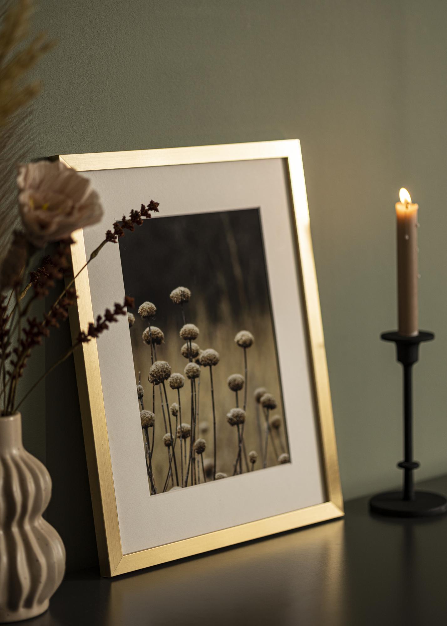 Avec ce cadre doré brillant, vos tableaux auront l'air encore plus luxueux. La couleur dorée met en valeur les motifs colorés et les motifs en noir et blanc - et si vous avez d'autres détails dorés dans la pièce, le cadre permettra également de les compléter !