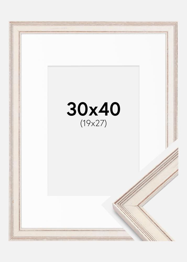 Cadre Shabby Chic Blanc 30x40 cm - Passe-partout Blanc 20x28 cm