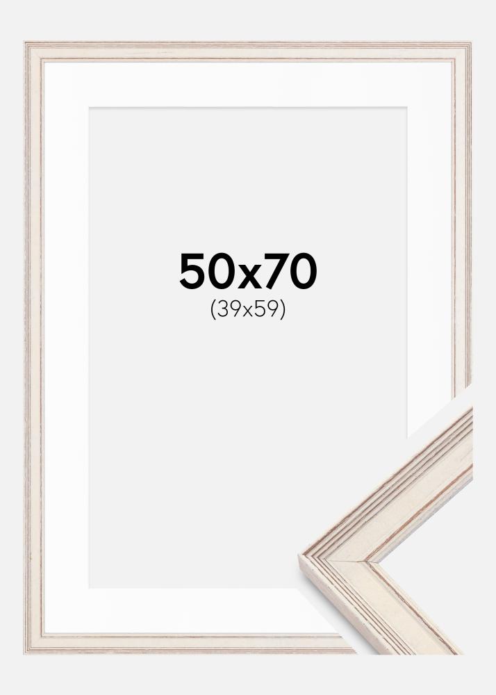 Cadre Shabby Chic Blanc 50x70 cm - Passe-partout Blanc 40x60 cm