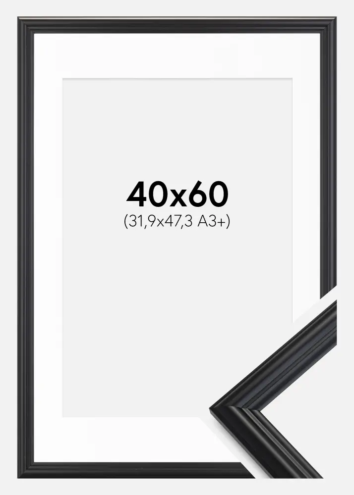 Cadre Siljan Noir 40x60 cm - Passe-partout Blanc 32,9x48,3 cm (A3+)