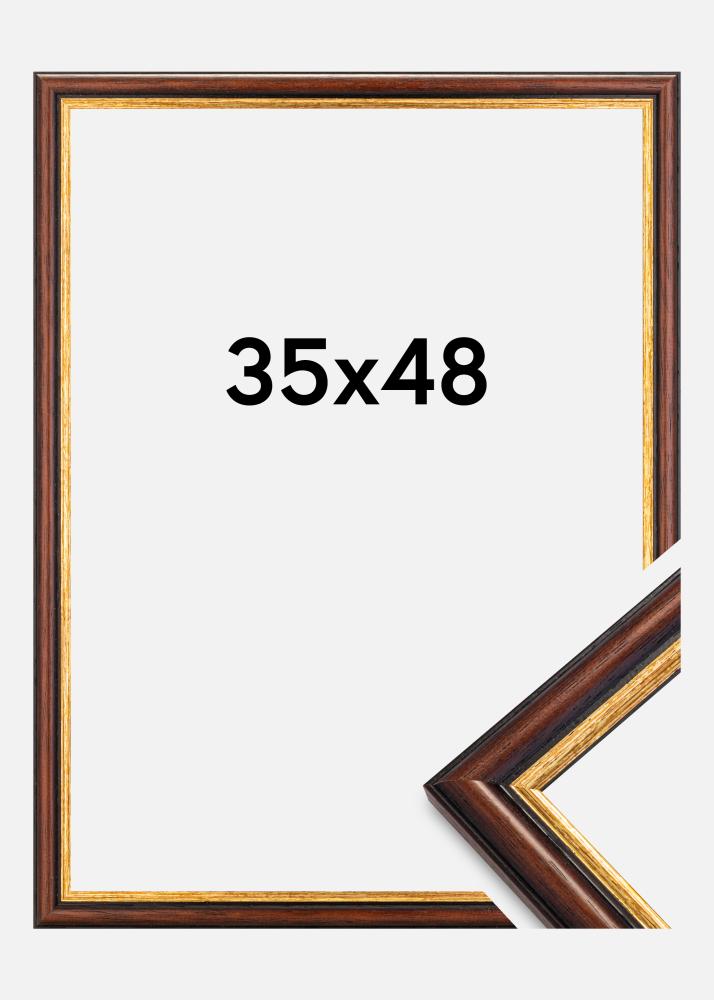 Permettez à ce cadre de devenir un joli détail d'intérieur dans votre maison. Le cadre est fabriqué en Suède, dans un bois d'ayous de haute qualité peinte dans une couleur brune chaude. Cette nuance brune est associée à une élégante bordure dorée auprès de votre image, afin de donner une élégante impression d'ensemble. Le cadre est doté d'un aspect classique, pouvant se marier facilement avec de nombreux motifs variés. Vous désirez peut-être l'utiliser en combinaison avec d'une photographie classique pour rehausser une ambiance traditionnelle ? Ou bien souhaitez-vous que ce cadre devienne contraste joliment avec un motif plus moderne ?
