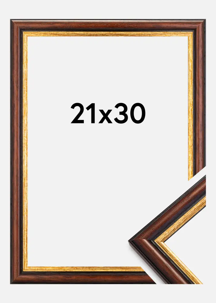 Permettez à ce cadre de devenir un joli détail d'intérieur dans votre maison. Le cadre est fabriqué en Suède, dans un bois d'ayous de haute qualité peinte dans une couleur brune chaude. Cette nuance brune est associée à une élégante bordure dorée auprès de votre image, afin de donner une élégante impression d'ensemble. Le cadre est doté d'un aspect classique, pouvant se marier facilement avec de nombreux motifs variés. Vous désirez peut-être l'utiliser en combinaison avec d'une photographie classique pour rehausser une ambiance traditionnelle ? Ou bien souhaitez-vous que ce cadre devienne contraste joliment avec un motif plus moderne ?