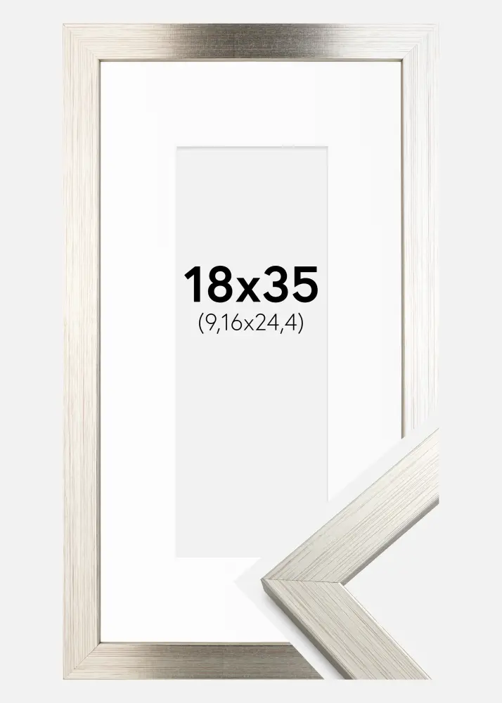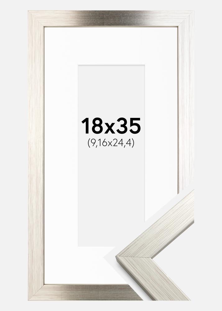 Cadre Silver Wood 18x35 cm - Passe-partout Blanc 4x10 inches