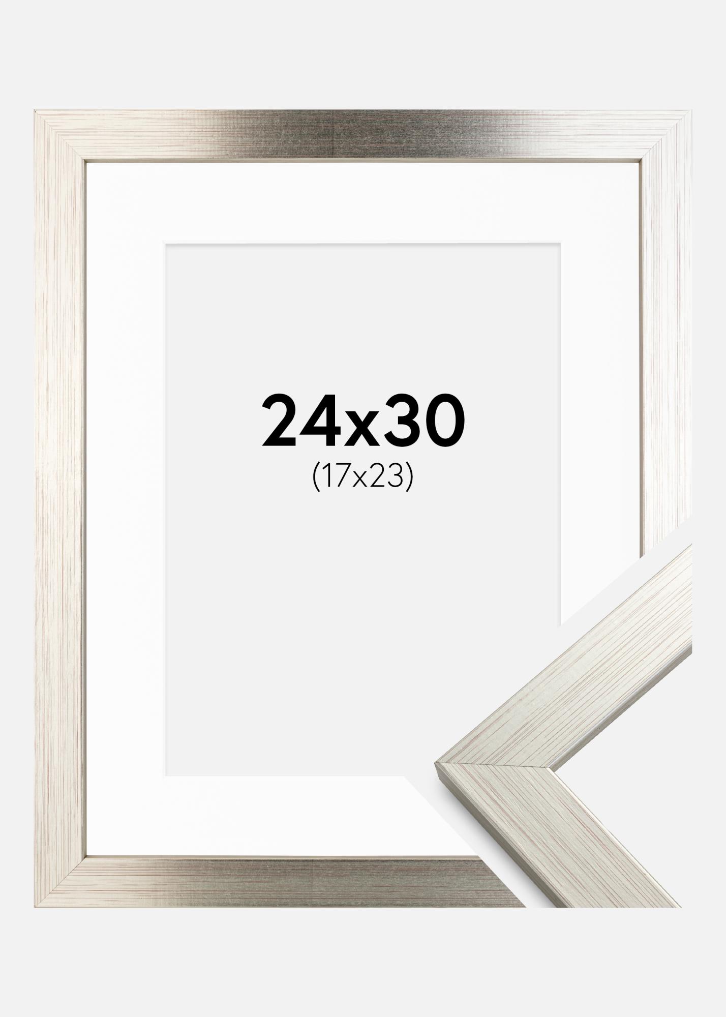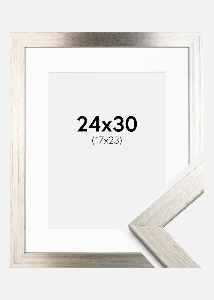 Cadre Silver Wood 24x30 cm - Passe-partout Blanc 18x24 cm