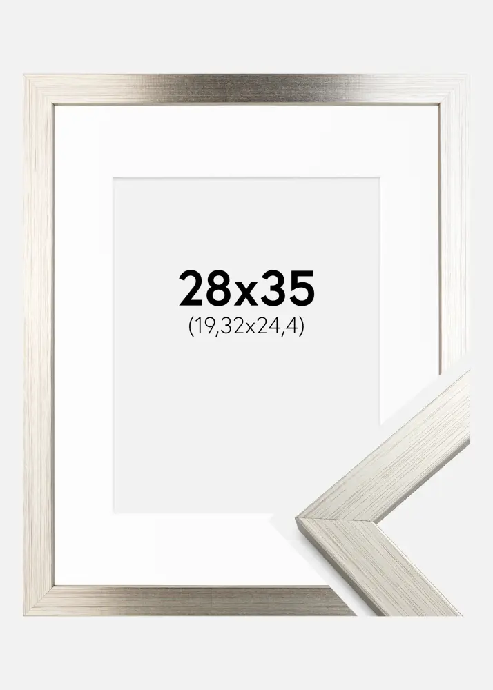 Cadre Silver Wood 28x35 cm - Passe-partout Blanc 8x10 inches