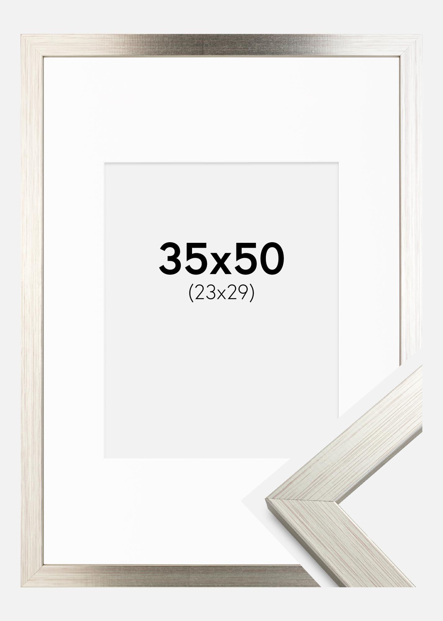 Cadre Silver Wood 35x50 cm - Passe-partout Blanc 24x30 cm