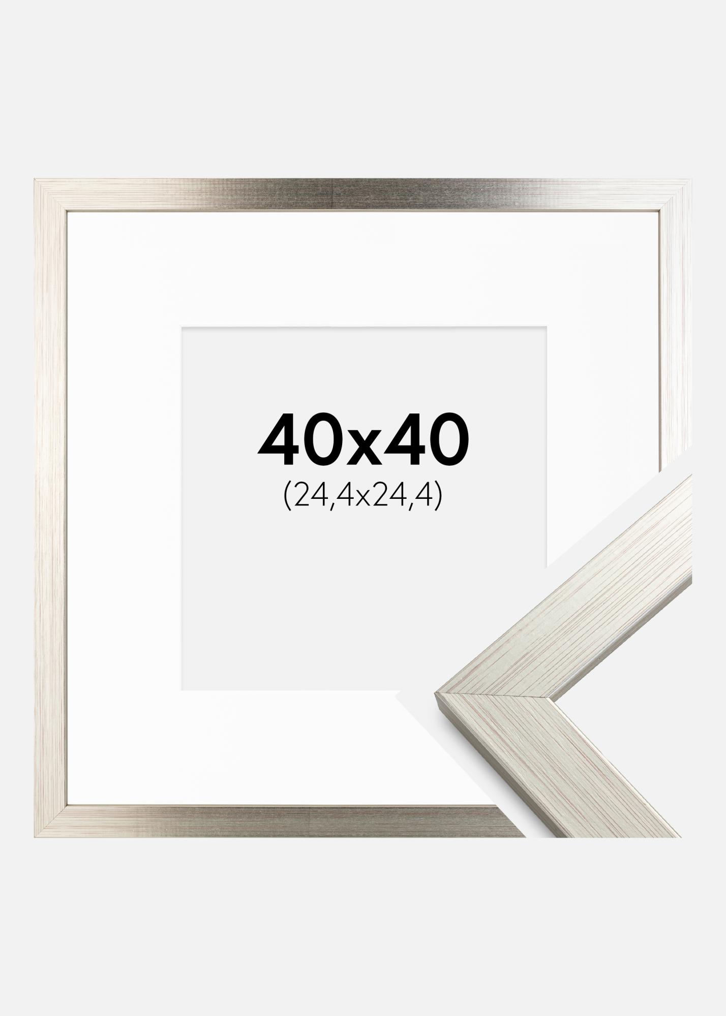 Cadre Silver Wood 40x40 cm - Passe-partout Blanc 10x10 inches