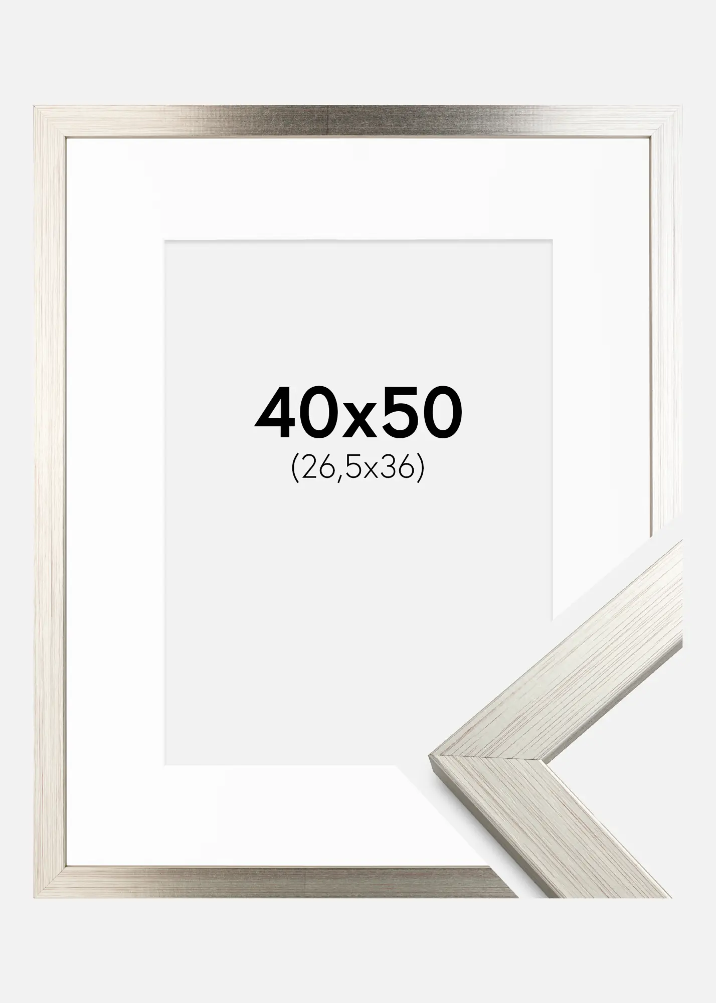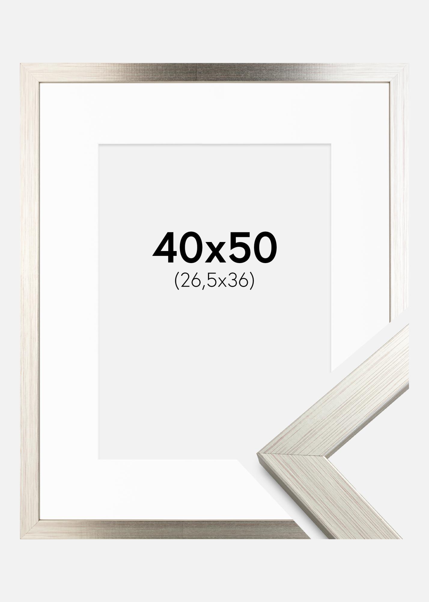 Cadre Silver Wood 40x50 cm - Passe-partout Blanc 27,5x37 cm