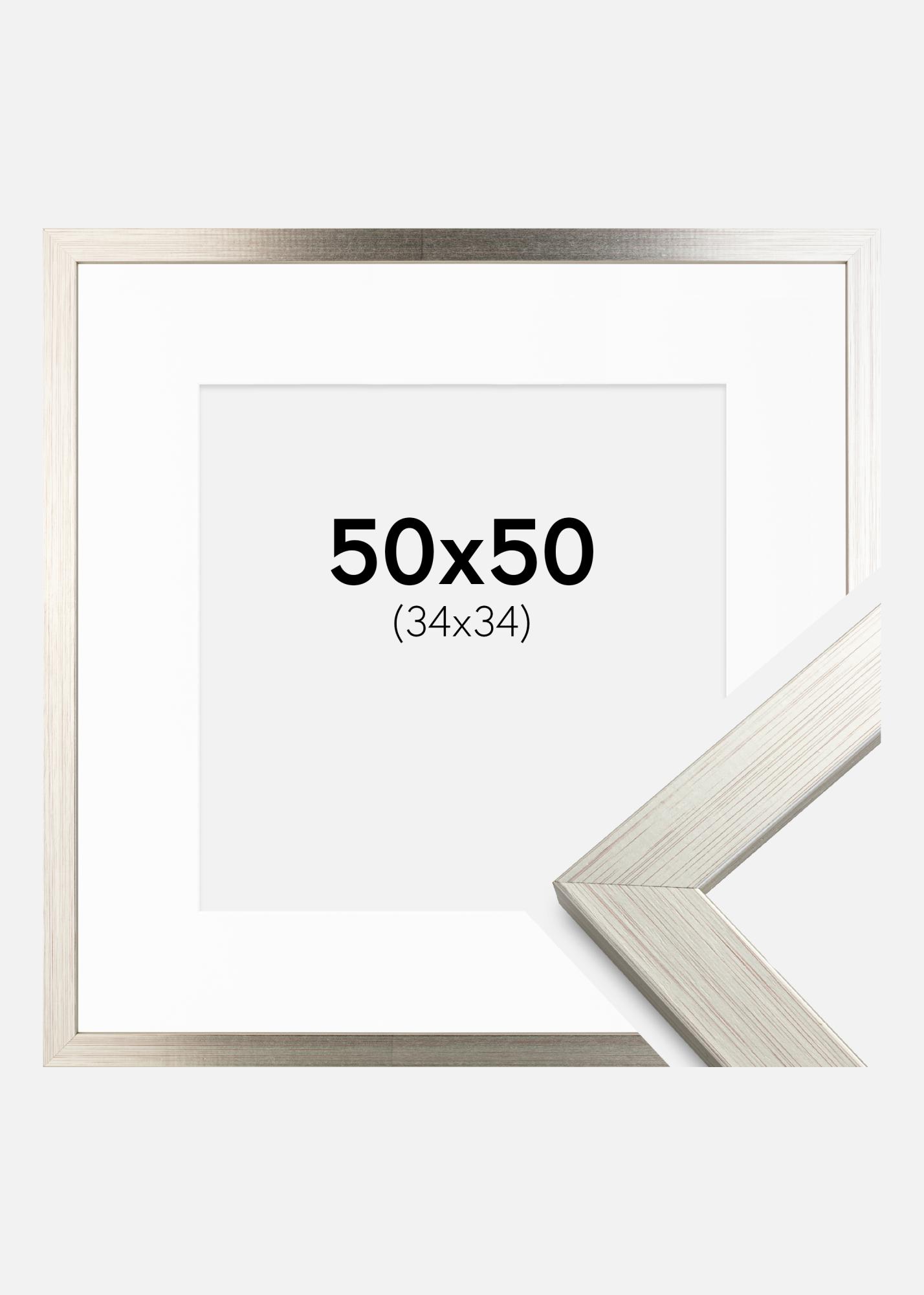 Cadre Silver Wood 50x50 cm - Passe-partout Blanc 35x35 cm
