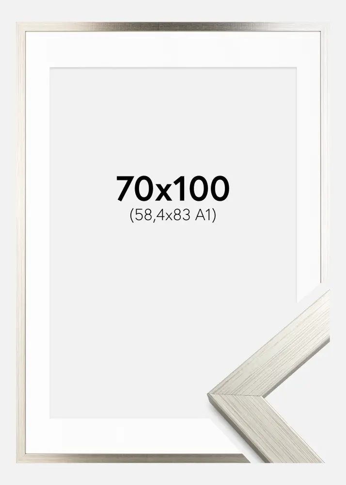 Cadre Silver Wood 70x100 cm - Passe-partout Blanc 59,4x84 cm (A1)