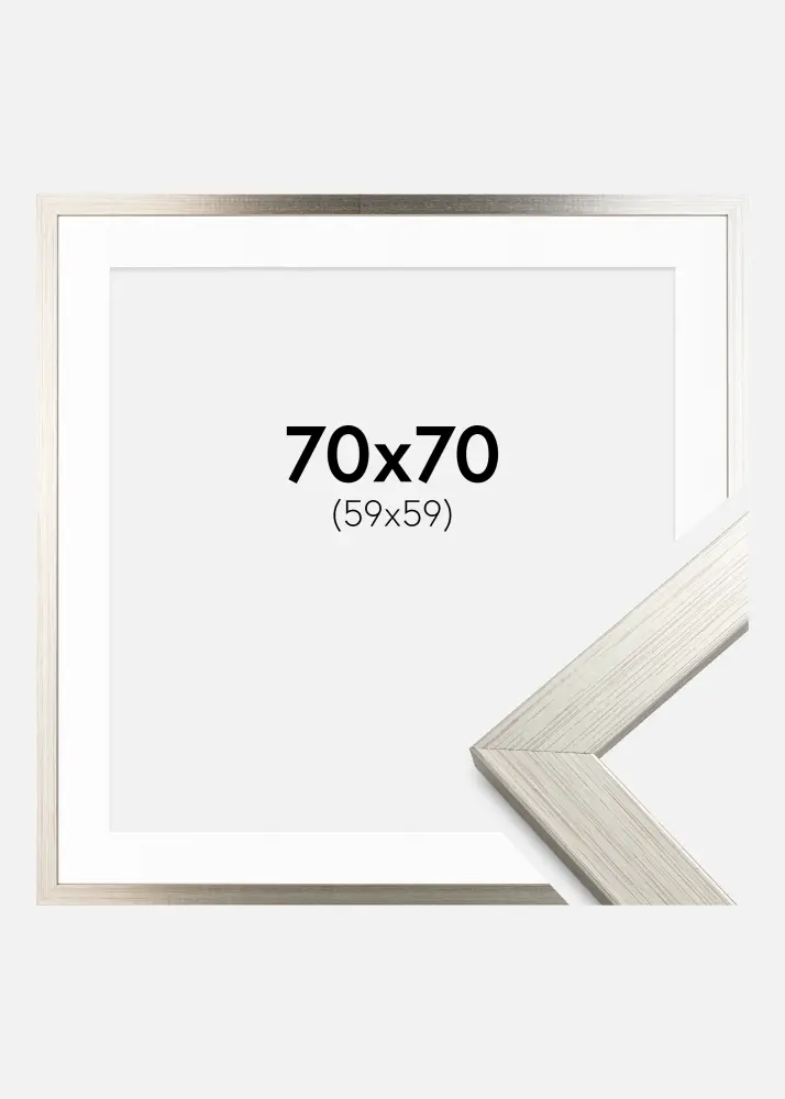 Cadre Silver Wood 70x70 cm - Passe-partout Blanc 60x60 cm