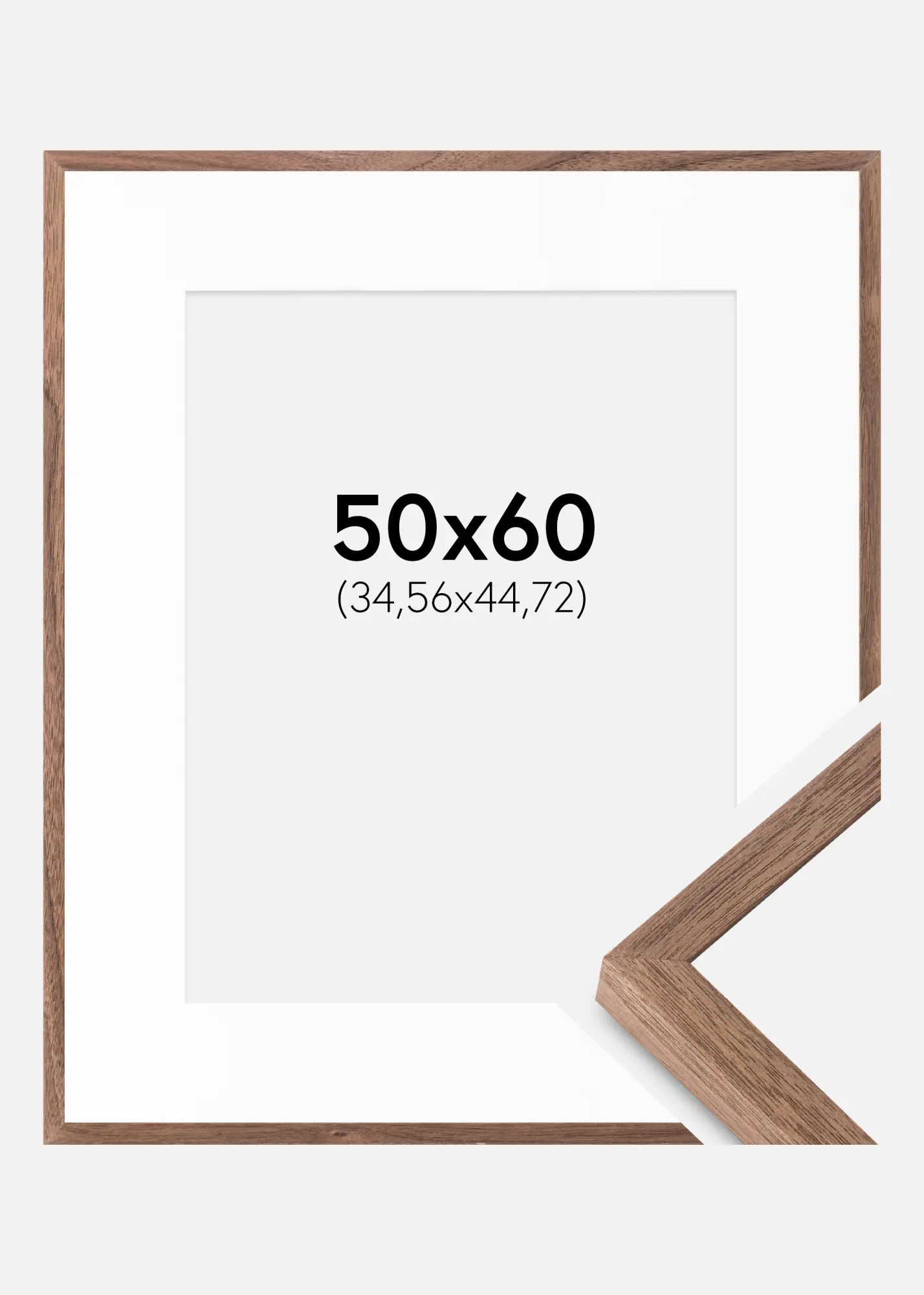 Forfait comprenant le cadre photo et le passe-partout blanc assorti. Sur la photo du produit, vous pouvez voir les dimensions du cadre (indiquées en gras) et les dimensions intérieures du passe-partout (indiquées entre parenthèses). Notez que les dimensions intérieures du passe-partout se doivent d'être toujours 1 cm inférieures par rapport à la taille de l'image que vous souhaitez encadrer.