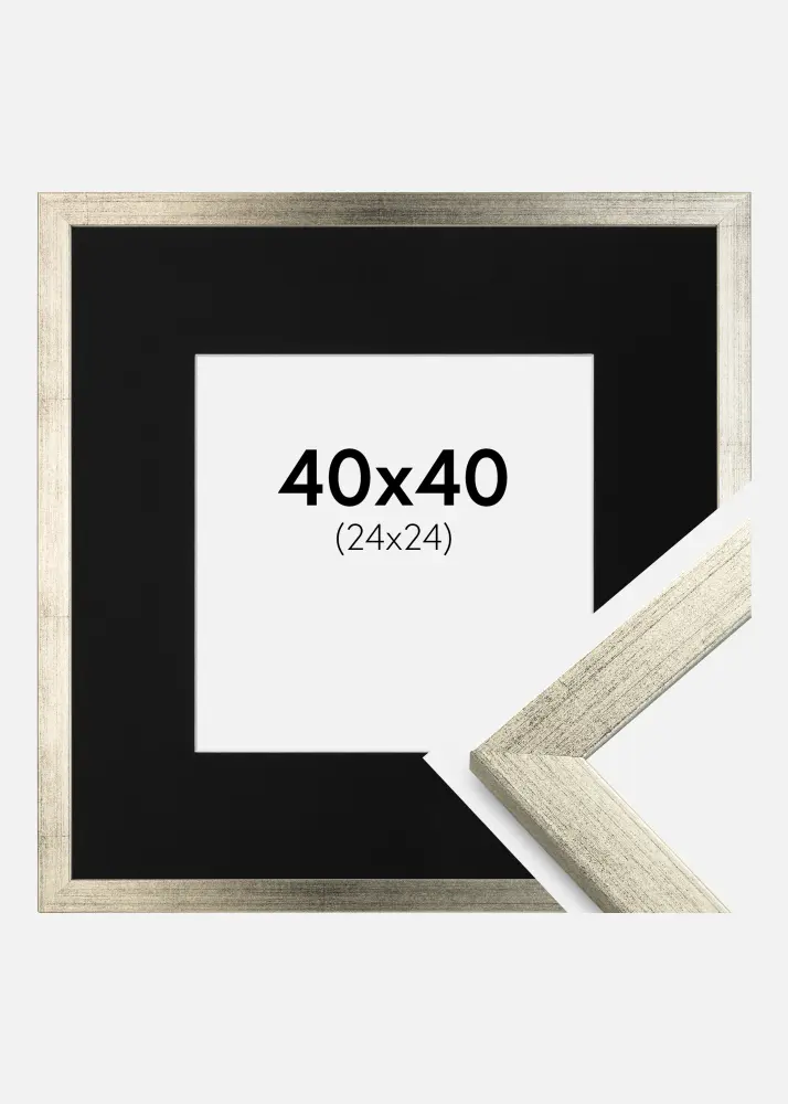 Cadre Stilren Argent 40x40 cm - Passe-partout Noir 25x25 cm