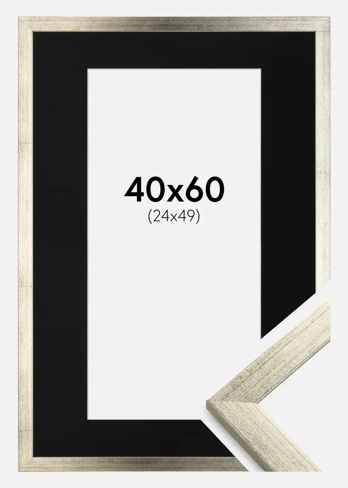 Cadre Stilren Argent 40x60 cm - Passe-partout Noir 25x50 cm