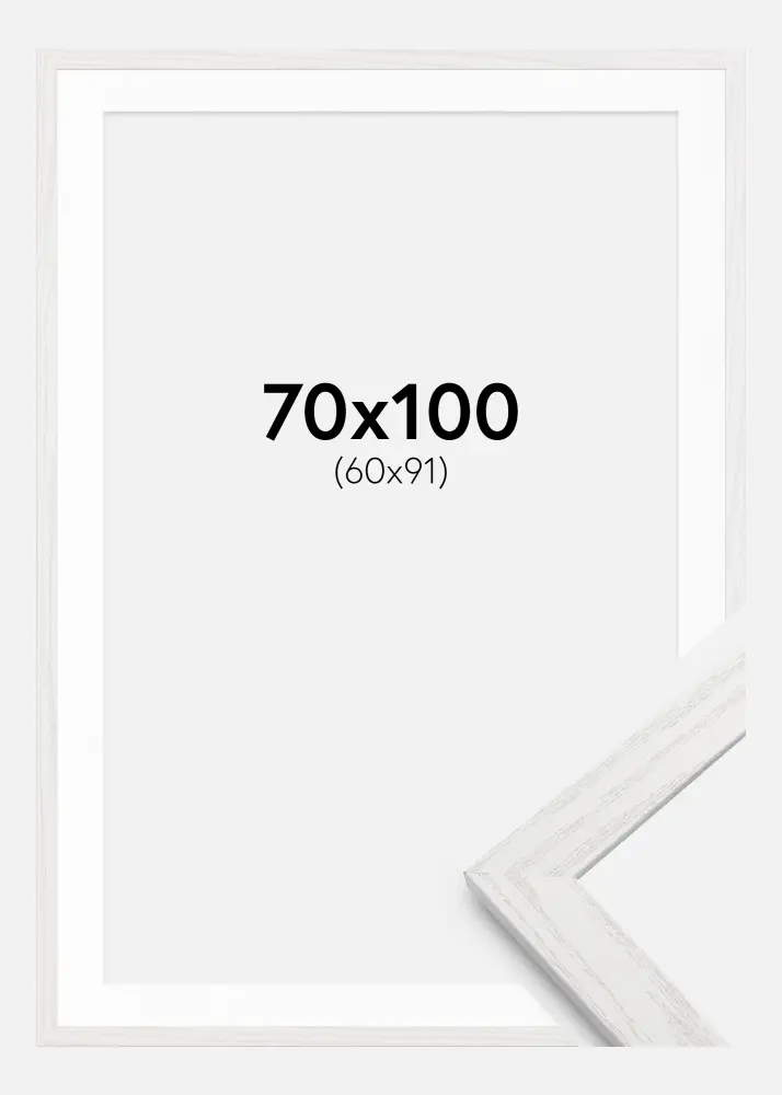 Kader Stilren eich massif wäiss eich 70x100 cm - Passe-partout wäiss 61x92 cm