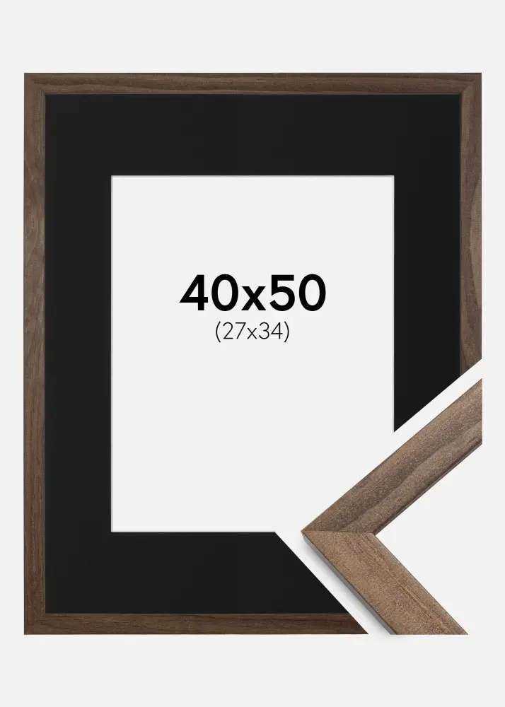 Cadre Stilren Noyer 40x50 cm - Passe-partout Noir 28x35 cm