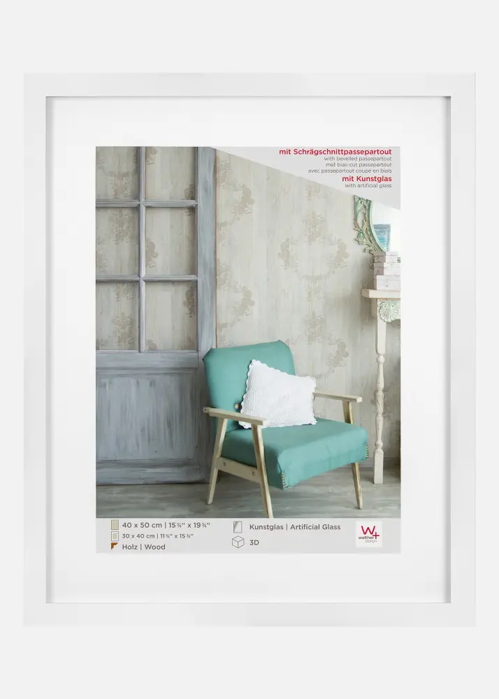 Cadre Stockholm Verre acrylique Blanc 40x50 cm