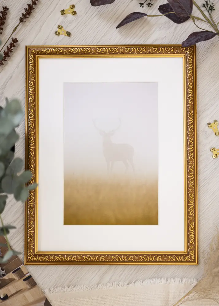 Avec ses dimensions de 29,7 x 42 cm, ce cadre doré est un ajout élégant à votre maison ou à votre bureau. Où que vous choisissiez de le placer, il apportera une touche d'élégance et rehaussera l'atmosphère de la pièce.