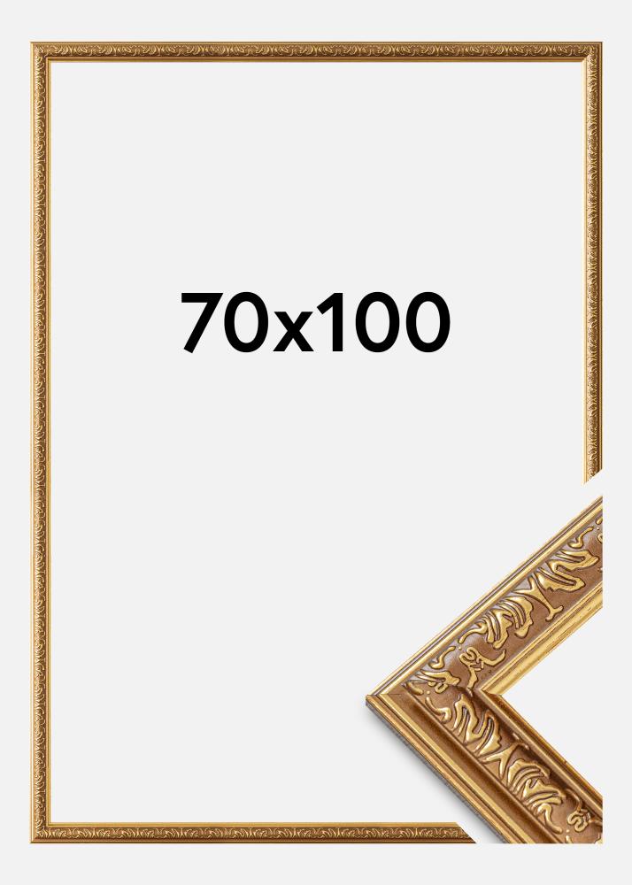 Ce cadre photo de taille 70x100 cm est une parfaite combinaison de design classique et de fonctionnalité moderne. Avec sa finition dorée luxueuse et ses détails décoratifs et ornés, il apporte une touche sophistiquée à vos œuvres d'art ou photographies. Les motifs complexes le long du bord intérieur du cadre créent une sensation traditionnelle et intemporelle, ce qui le rend idéal pour les styles d'intérieur à la fois classiques et élégants.