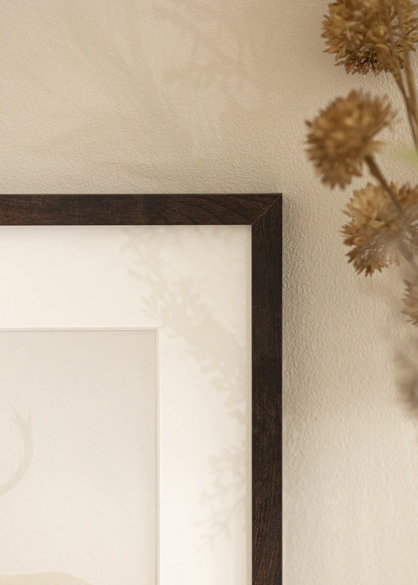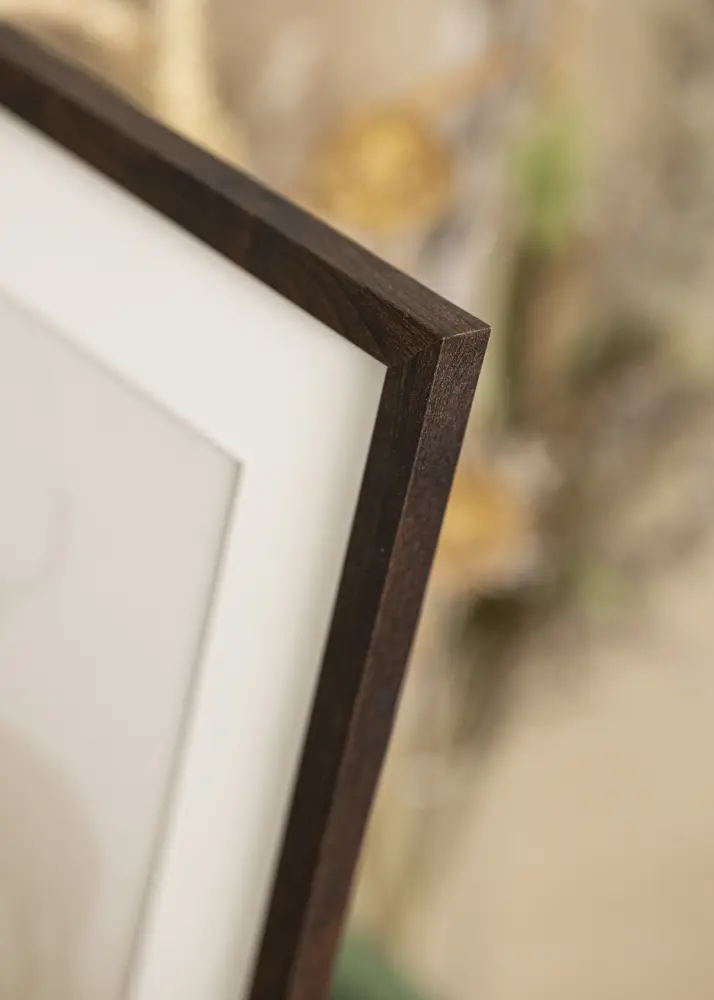 Ein Bilderrahmen in Nuancen von Walnussholz gibt Ihren Motiven einen naturnahen Rahmen mit hoher Eleganz. Dies ist ein Modell mit 14 mm breiter Leiste mit klassischem quadratischem Profil sowie kristallklarem Acrylglas. Acrylglas ist eine Glasvariante, die unzerbrechlich und leicht im Gewicht ist, was diesen Bilderrahmen zu einer passenden Wahl für Sie macht, wenn Sie eine leichtere Aufhängung wünschen.