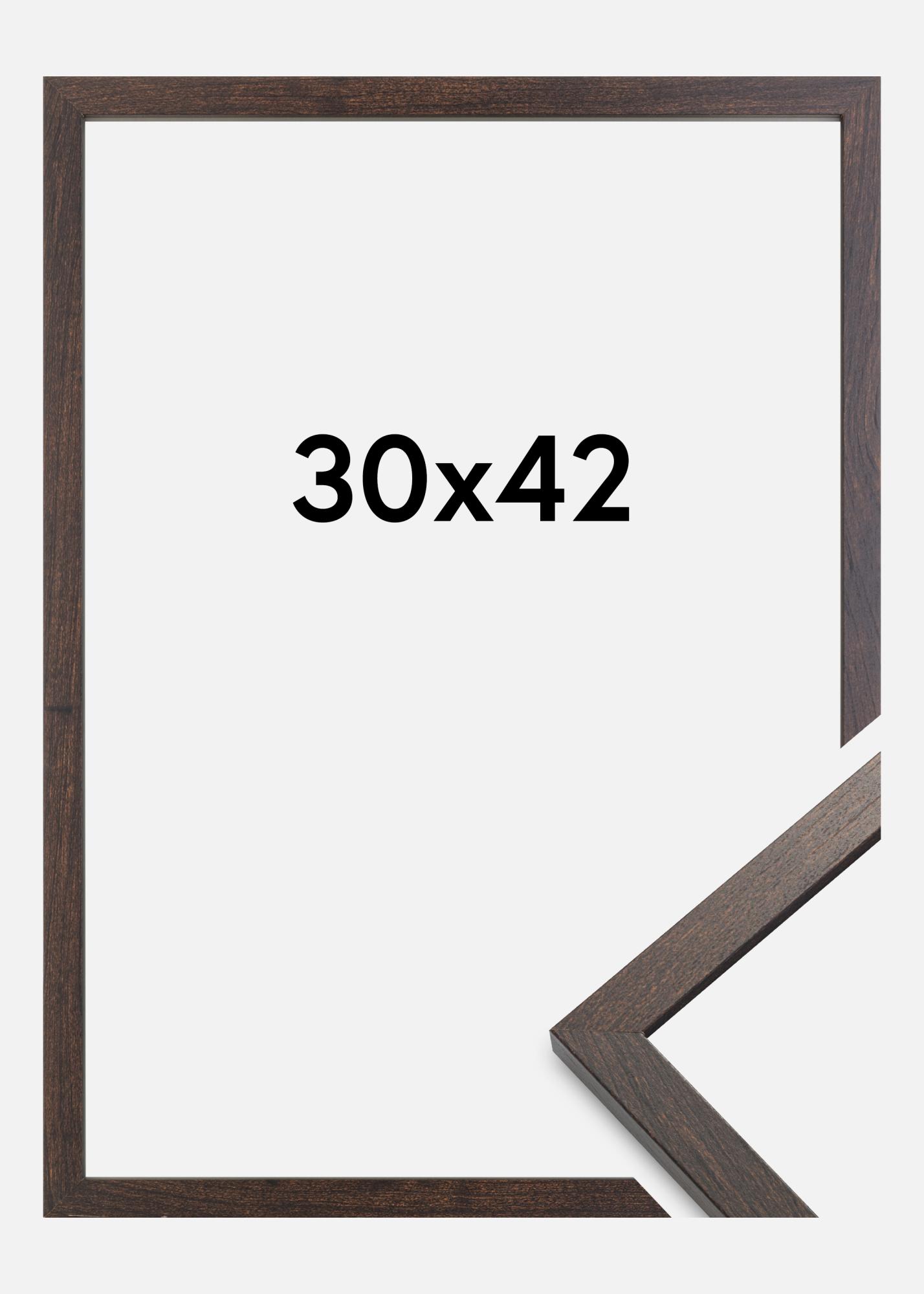 Ce cadre photo couleur noyer est une parfaite combinaison de style et de fonctionnalité. Avec une taille de 30x42 cm, il est idéal pour mettre en valeur vos photographies préférées, œuvres d'art ou affiches. La finition brun foncé mate offre une sensation chaleureuse et naturelle qui s'intègre aussi bien dans les intérieurs classiques que modernes. Le design minimaliste avec une baguette de cadre de 15 mm de largeur et une profondeur de 15 mm crée un encadrement discret qui laisse le sujet au centre de l'attention.