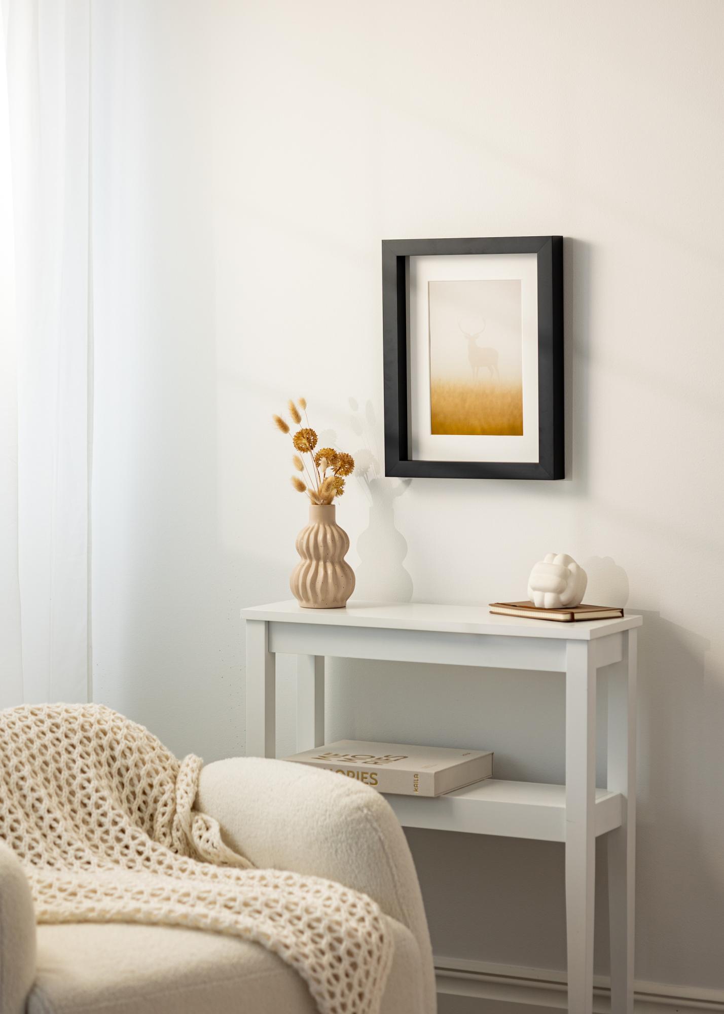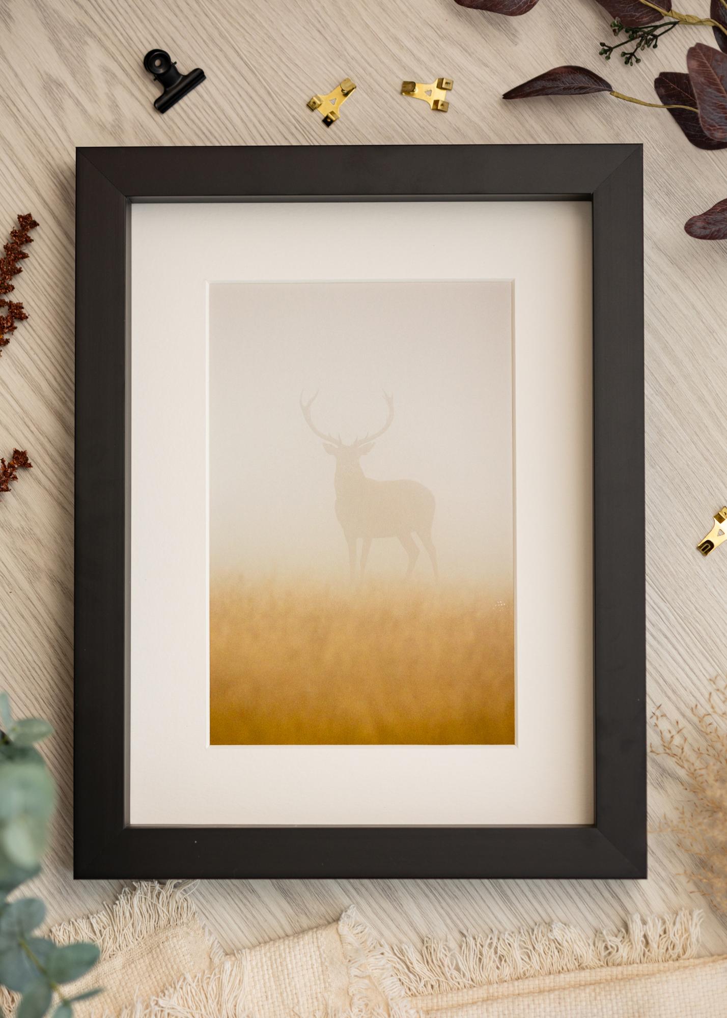Le cadre a une baguette de 30 mm de large et une profondeur de 50 mm, ce qui lui confère une sensation de robustesse et de solidité. Une caractéristique unique de ce cadre est sa baguette de distance, qui crée un espace aéré entre le sujet et le verre. Cela donne une dimension supplémentaire à votre encadrement et permet au sujet de vraiment se concentrer.