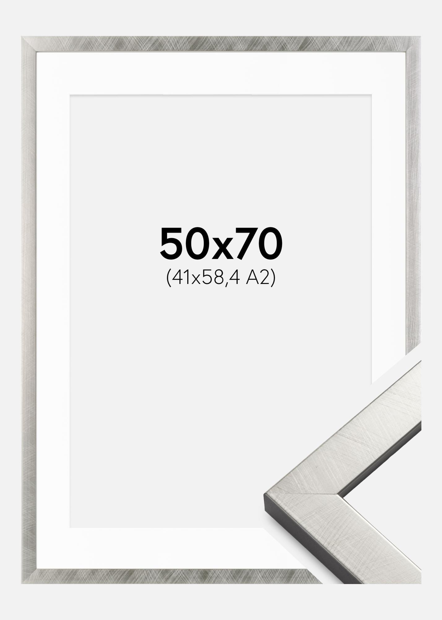 Cadre Uppsala Argent 50x70 cm - Passe-partout Blanc 42x59,4 cm (A2)