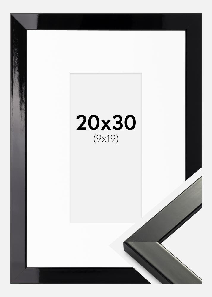 Cadre Uppsala Noir Très brillant 20x30 cm - Passe-partout Blanc 10x20 cm