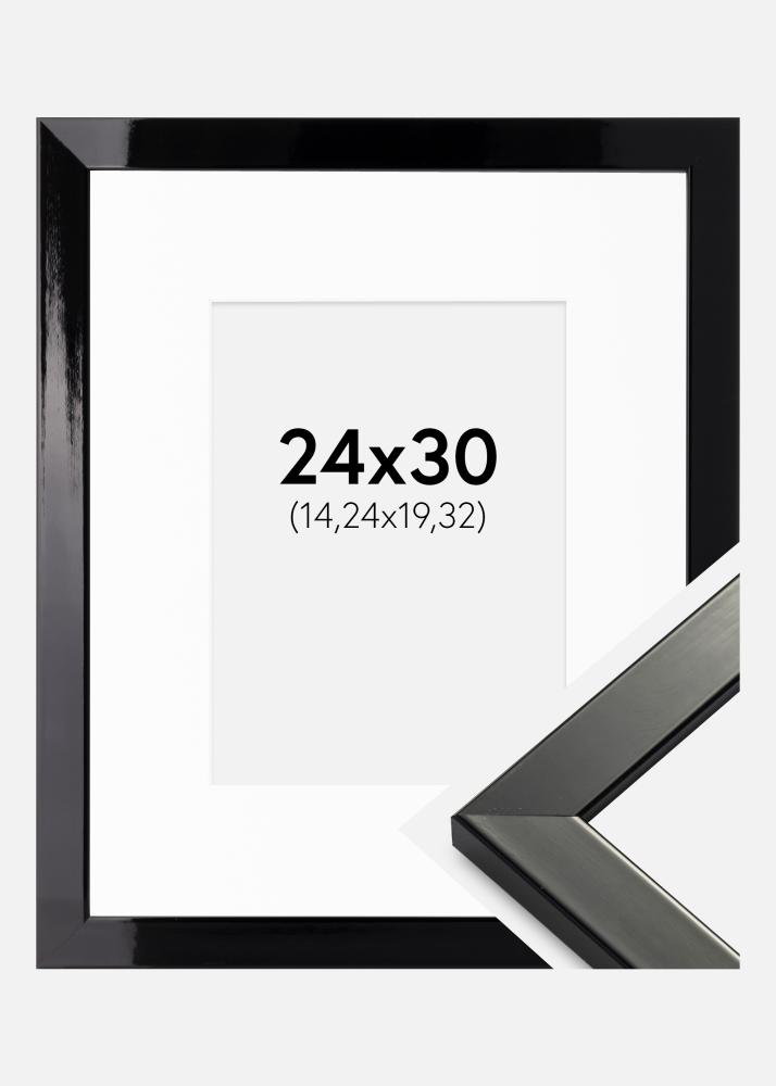 Cadre Uppsala Noir Très brillant 24x30 cm - Passe-partout Blanc 6x8 inches