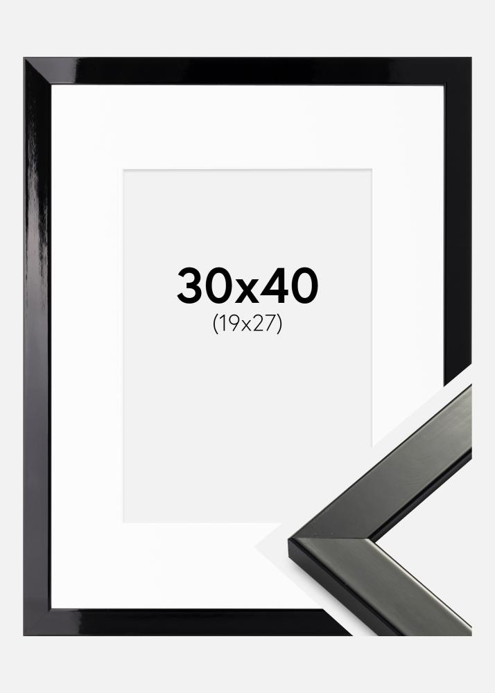 Cadre Uppsala Noir Très brillant 30x40 cm - Passe-partout Blanc 20x28 cm
