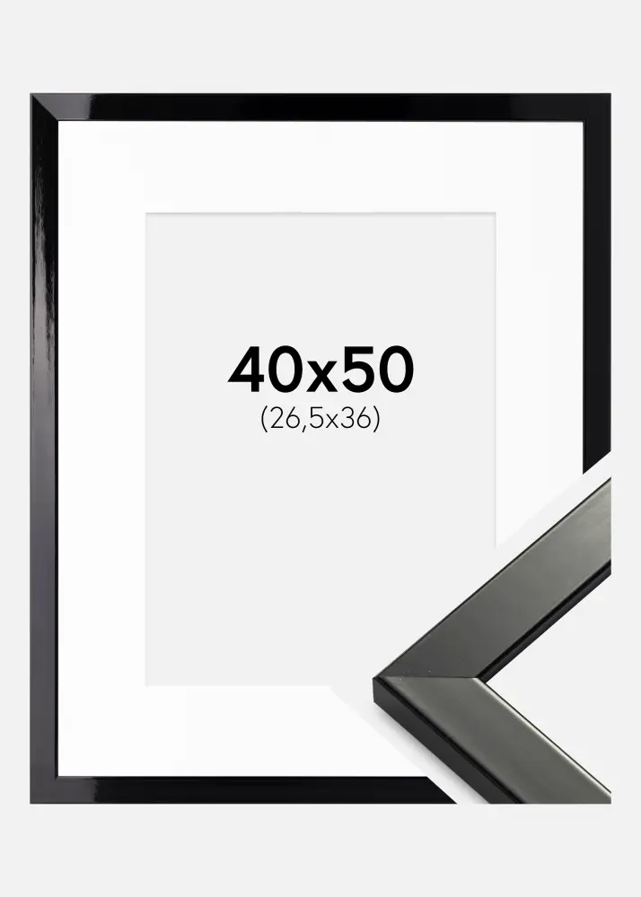 Cadre Uppsala Noir Très brillant 40x50 cm - Passe-partout Blanc 27,5x37 cm