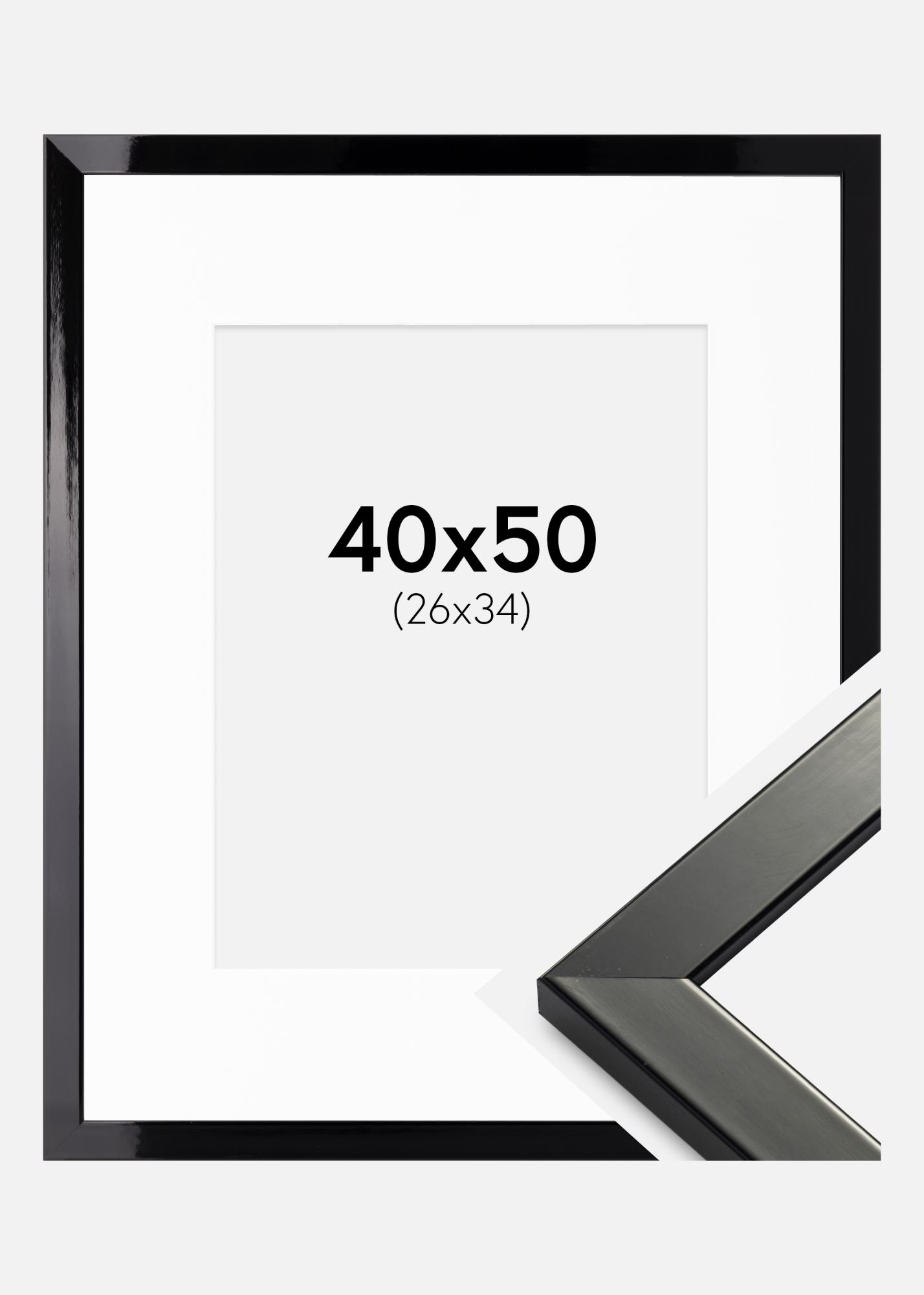 Cadre Uppsala Noir Très brillant 40x50 cm - Passe-partout Blanc 27x35 cm