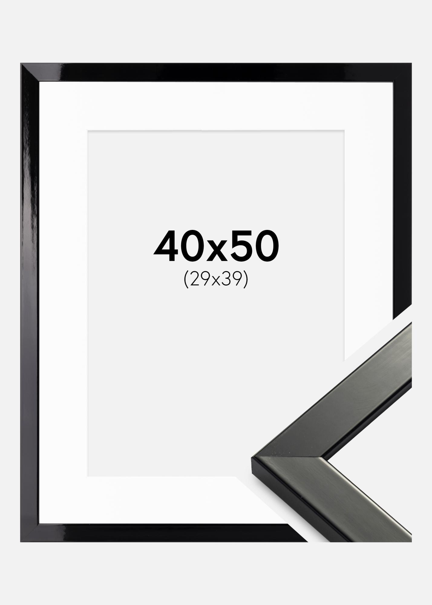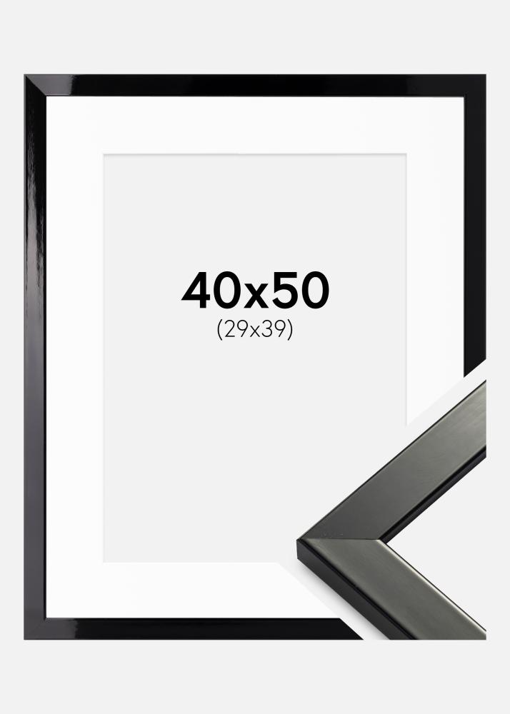 Cadre Uppsala Noir Très brillant 40x50 cm - Passe-partout Blanc 30x40 cm