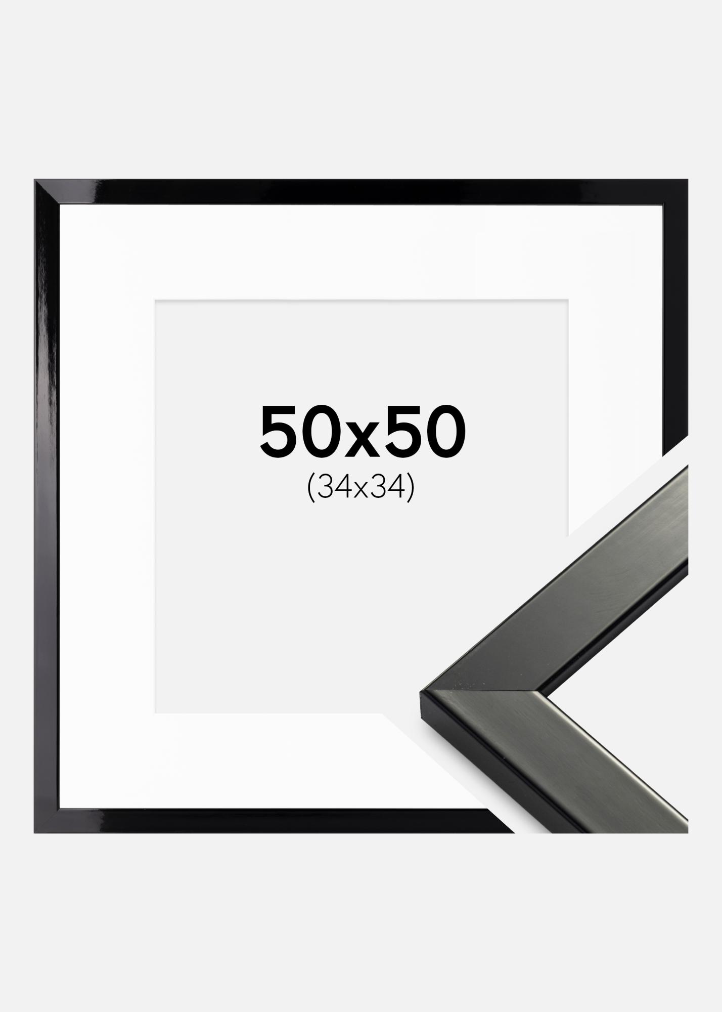 Cadre Uppsala Noir Très brillant 50x50 cm - Passe-partout Blanc 35x35 cm