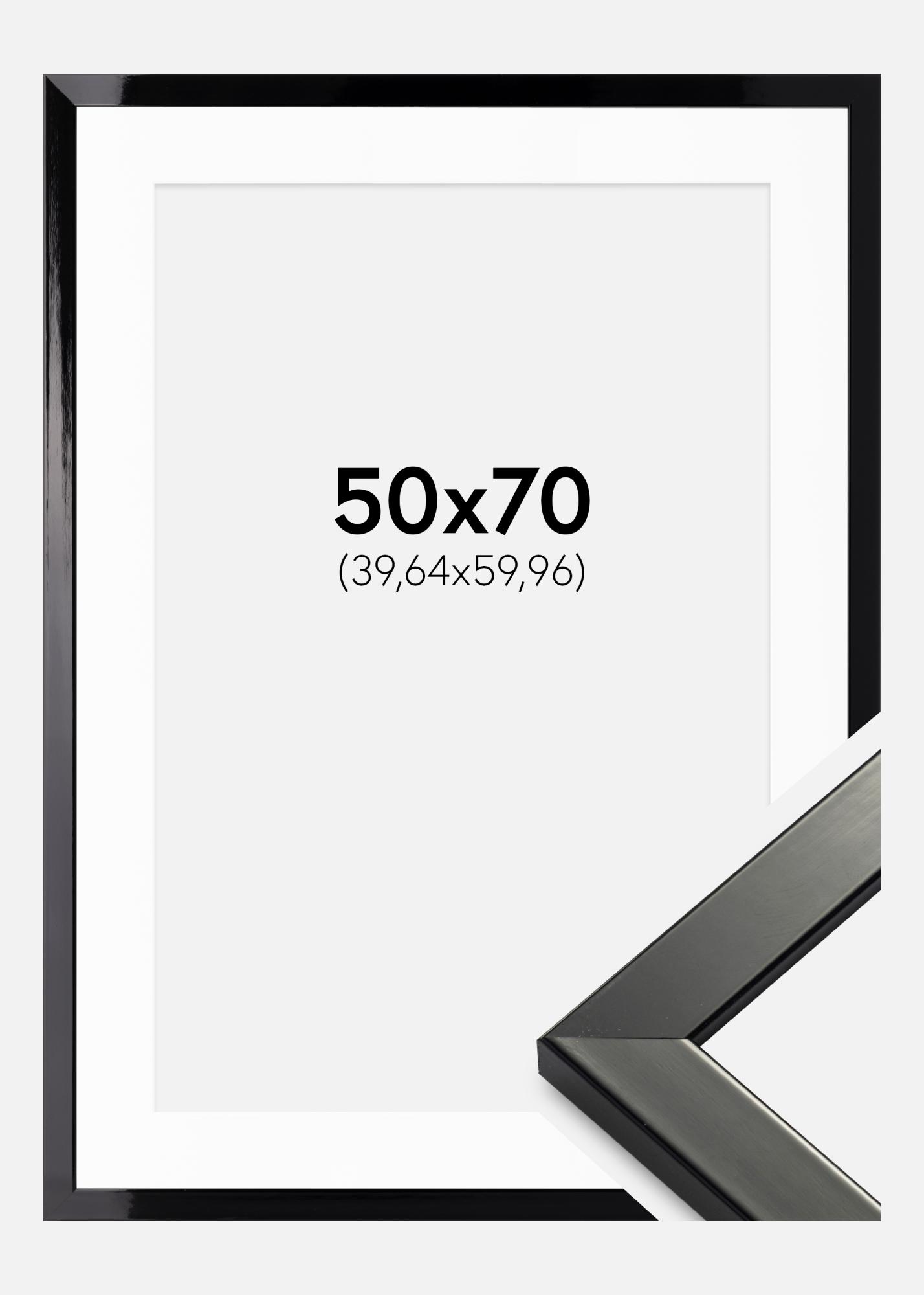 Cadre Uppsala Noir Très brillant 50x70 cm - Passe-partout Blanc 16x24 inches
