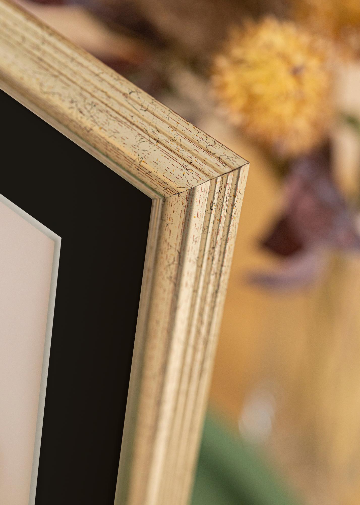 Forfait comprenant un cadre photo et un passe-partout noir inclus. Sur l'image du produit vous pouvez voir les dimensions du cadre (indiquées en gras) et les dimensions intérieures du passe-partout (indiquées entre parenthèses). Veuillez noter que les dimensions intérieures du passe-partout doivent toujours être inférieures de 1 cm à la taille de l'image souhaitée.