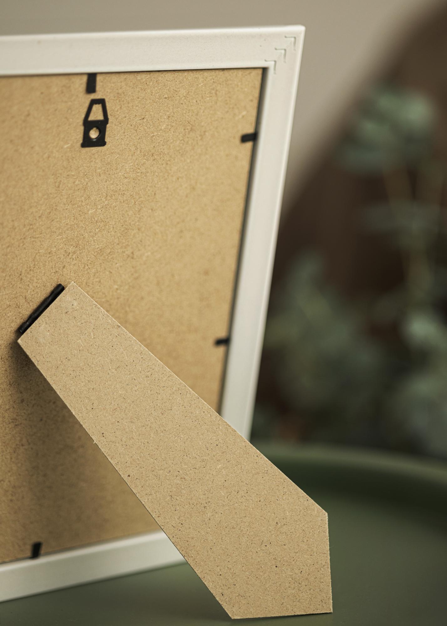 Forfait comprenant le cadre photo et le passe-partout blanc assorti. Sur la photo du produit, vous pouvez voir les dimensions du cadre (indiquées en gras) et les dimensions intérieures du passe-partout (indiquées entre parenthèses). Notez que les dimensions intérieures du passe-partout se doivent d'être toujours 1 cm inférieures par rapport à la taille de l'image que vous souhaitez encadrer.